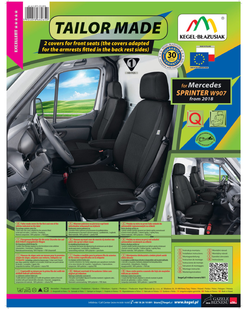 The covers have special, secure seams for airbags, making them suitable for cars with both side airbags in the seats and standard seats. Professional workmanship and safety of use are guaranteed by certification and testing by the Motor Transport Institute.