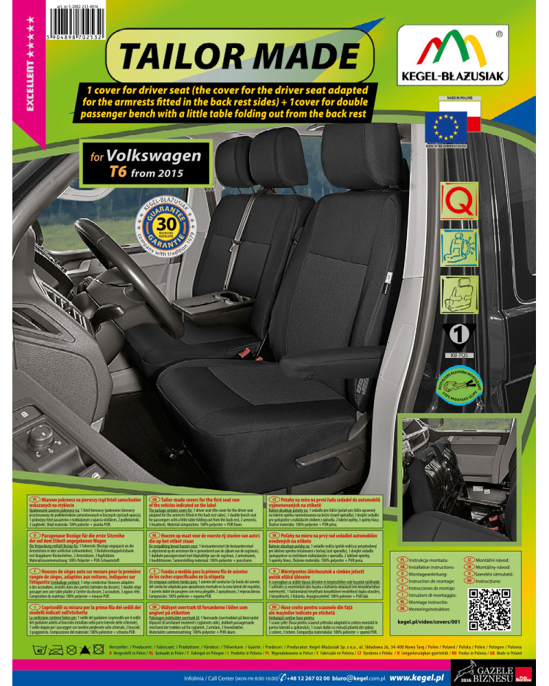 The covers have special, secure seams for airbags, making them suitable for cars with both side airbags in the seats and standard seats. Professional workmanship and safety of use are guaranteed by certification and testing by the Motor Transport Institute.