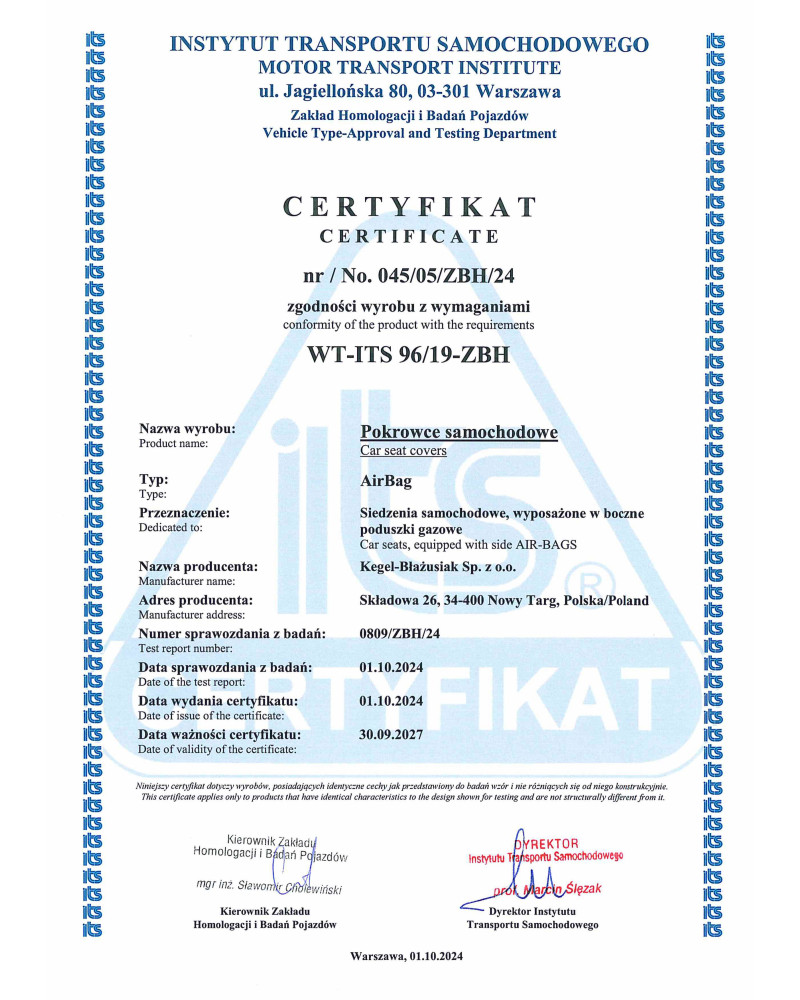 The safety of our covers is confirmed by a certificate and tests carried out by Instytut Transportu Samochodowego