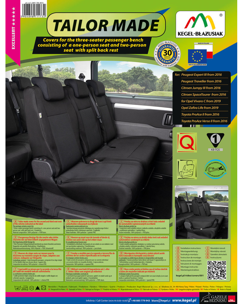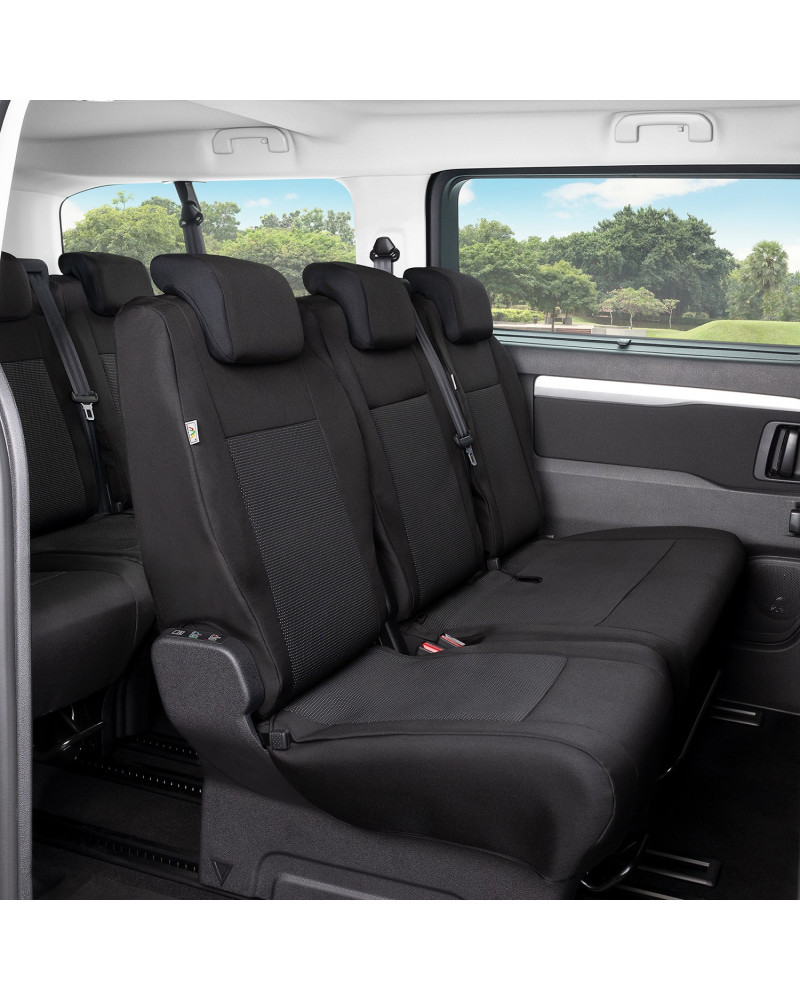 • 1 cover for the three-person bench passenger seat consisting of one bucket [single] seat and a double bench with split back rest