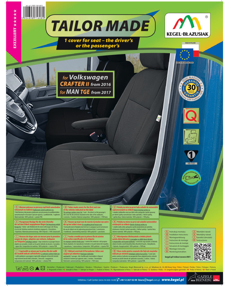 The covers have special, secure seams for airbags, making them suitable for cars with both side airbags in the seats and standard seats. Professional workmanship and safety of use are guaranteed by certification and testing by the Motor Transport Institute.