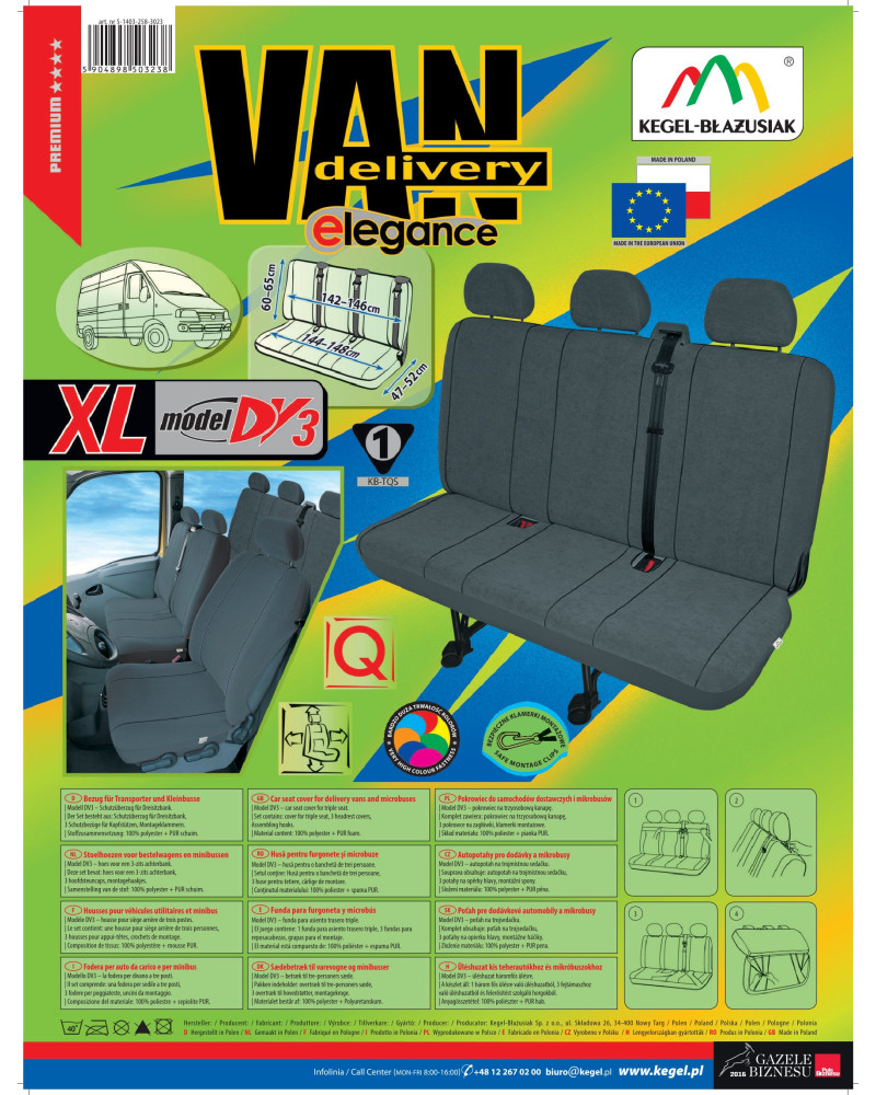 Well-fitted ELEGANCE covers – extremely elegant and safe covers for passenger cars. They fit well thanks to their appropriate design and suitability for specific car models. Laminated on the inside with PUR foam, they ensure good adhesion to the upholstery. They are renowned for their very pleasant and soft velour fabric, which looks extremely good in the interior of any car. The material is of the highest quality. It is a type of upholstery fabric that is resistant to abrasion and tearing. ELEGANCE car covers are characterised by their aesthetic and careful workmanship and precise finish. Thanks to them, the original car upholstery will remain in good condition for a long time. The grey, calm, uniform colour scheme will refresh the interior of your car and add elegance and class. Appearance goes hand in hand with functionality, as the covers protect the original upholstery very well against all kinds of dirt and most types of damage. Become the owner of the most stunning interior!