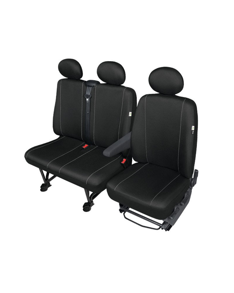 The fitted cover HERMES-HERMAN is our first new model of covers for delivery vehicles, which we manufacture from high-quality, flame-retardant upholstery fabric laminated with thick foam. The middle part of the material is made of jacquard fabric with a raised pattern, laminated with 10 mm foam and additionally glued with chiffon,  while the sides of the seats and backrests are made of smooth fabric laminated with 3 mm foam. This makes the cover thick and sturdy, and therefore very durable. The HERMES-HERMAN cover has been professionally made and carefully finished, and its production has been carried out in accordance with the highest quality standards. The innovative design of the HERMES-HERMAN cover means that it fits well on the seats of specific car models. The covers in this series have been designed with attention to every detail – in the case of the two-seater sofa cover, space has been provided for headrests and seat belt slots. The covers are equipped with the necessary Velcro fasteners, allowing them to be put on without having to remove the headrests. The 25-month warranty gives you the confidence that you are buying a top-quality product.  Now is the time to take care of your vehicle's interior.