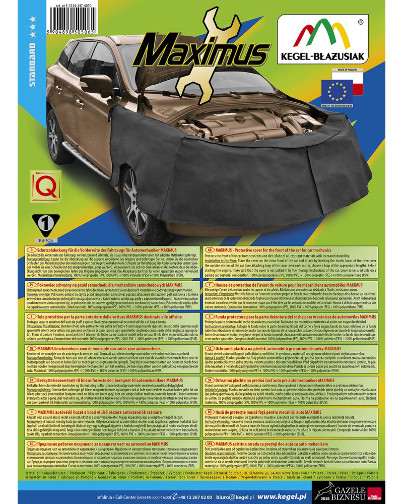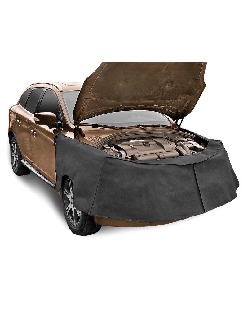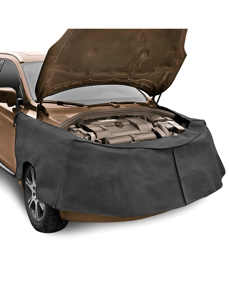 The MAXIMUS II protective cover has been designed for car mechanics and service centre employees to protect the front and sides of the car being serviced from scratches and dirt, and to ensure comfortable working conditions for mechanics. It protects the entire front section around the engine compartment and the sides of the car being repaired, allowing service centre employees to repair the car freely without fear of damaging the bodywork. The cover is made of water-resistant and oil-resistant SPUNBOND non-woven fabric, a material that provides reliable protection for the car. The non-woven fabric is soft on the inside and does not scratch the bodywork. An eco-friendly, reusable product. Made in a universal size - for use in any car model. Easy to install – securely fastened with non-slip material, thanks to which it almost "sticks" to the car being serviced. Equipped with additional elastic bands to attach to the mirrors for increased safety. Does not contain any metal elements. The cover is easy to clean. It is convenient to store/transport, as it does not take up much space when folded. When you buy our covers, you can be sure that you are getting a product of the highest quality.