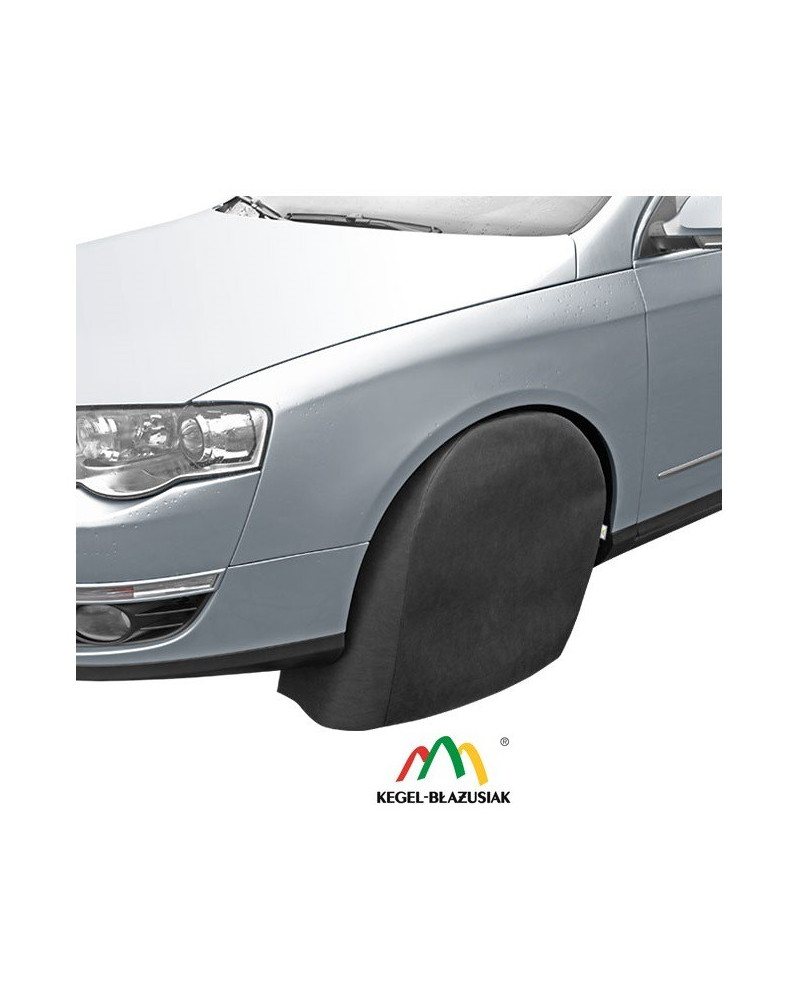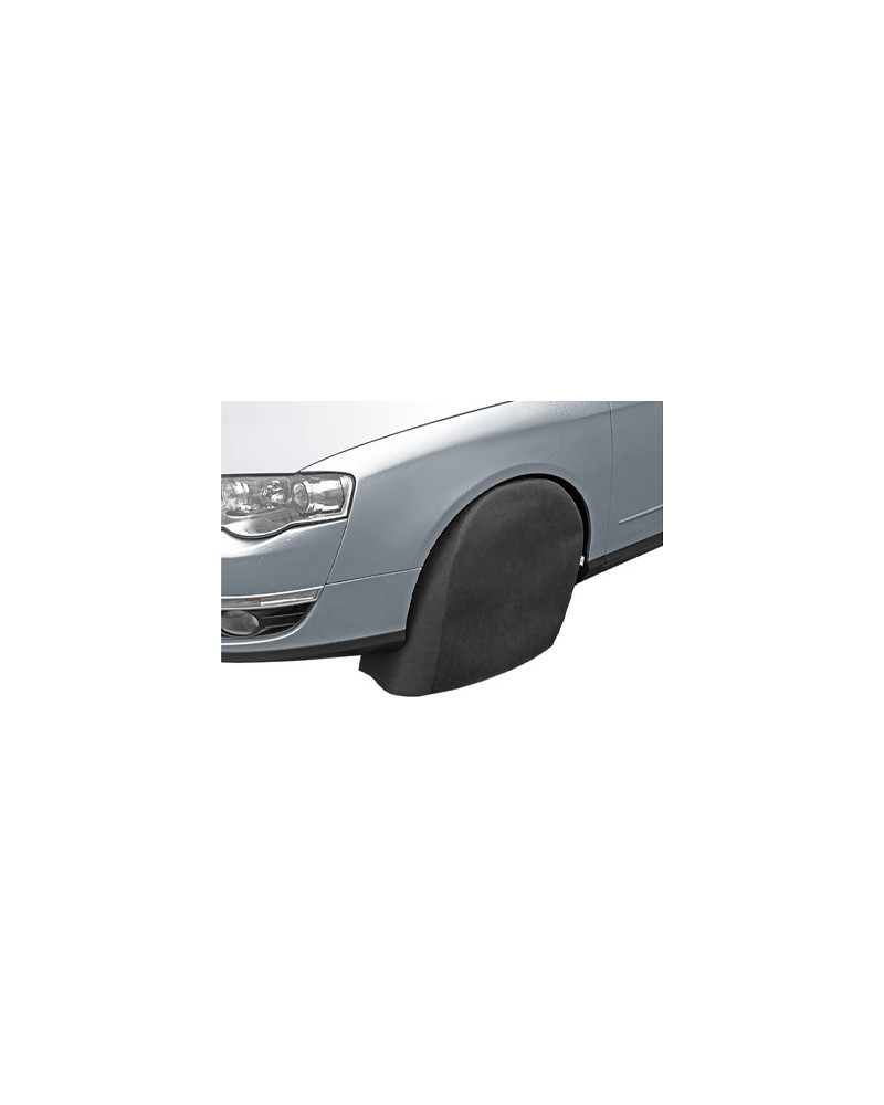 Set of 2 protective wheel covers for painters - LACKIERER. The covers are made of thick black polypropylene non-woven fabric, which protects the wheels of the painted car from dirt. The covers are resistant to paint and provide reliable protection for wheels during all types of repairs in car repair shops and service centres. They protect specific parts of the car from damage and also increase the painter's comfort. LACKIERER covers are an eco-friendly, reusable product that is easy to install and clean. They are convenient to store and transport.