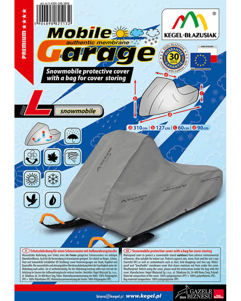 Good tarpaulin covers should not only protect the car from precipitation, pollution and sunlight but should also be safe. These are our Kegel-Błażusiak covers-tarpaulins. Our specialists carry out long-term tests of our covers-tarpaulins. We carry out tests for the effectiveness of protection of the vehicle by the cover-tarpaulin against weather conditions and water resistance, steam evacuation from under the cover, the safety of the cover for the vehicle paint coating and the effectiveness of fastening the cover on the vehicle in normal and extreme weather conditions. Our company Kegel-Błażusiak produces only those products that pass long-term tests.