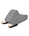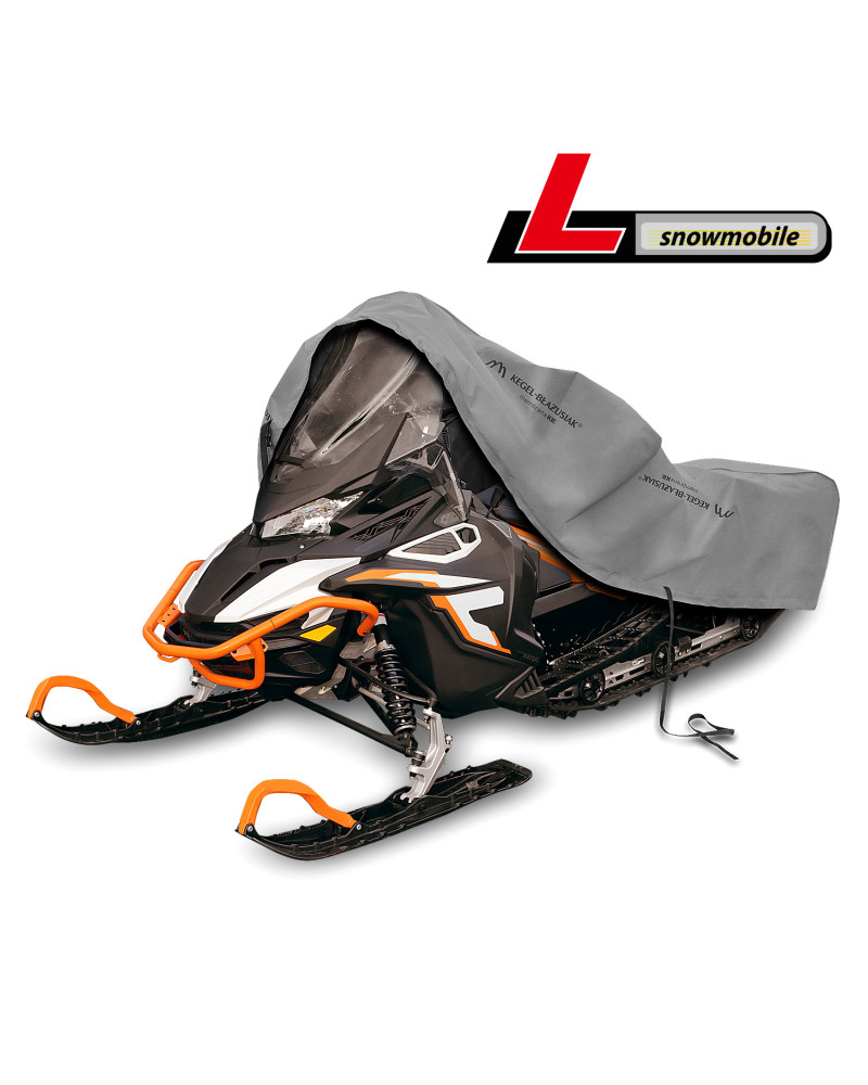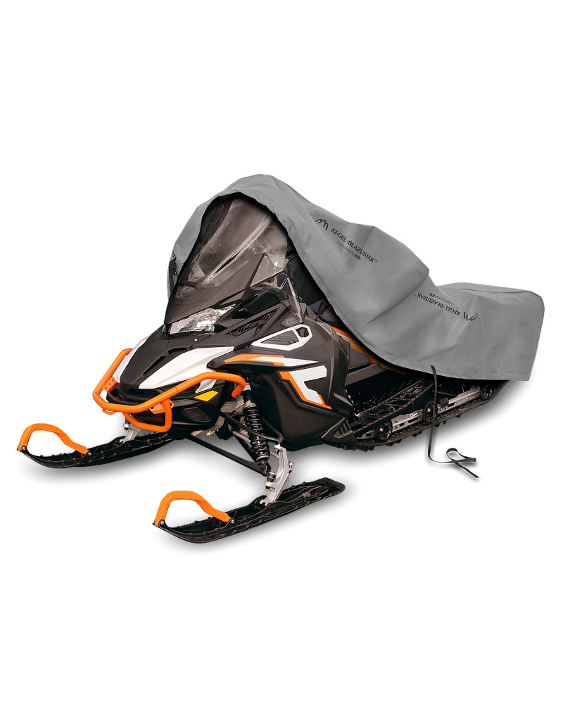 Waterproof cover to protect a snowmobile stored outdoors from adverse environmental influences. Also suitable for indoor use. Protects against rain, snow, frost and the sun's rays (harmful UV) as well as contaminants such as dust, bird droppings and tree sap. Waterproof and "breathable" membrane cover that draws moisture out from under the cover.