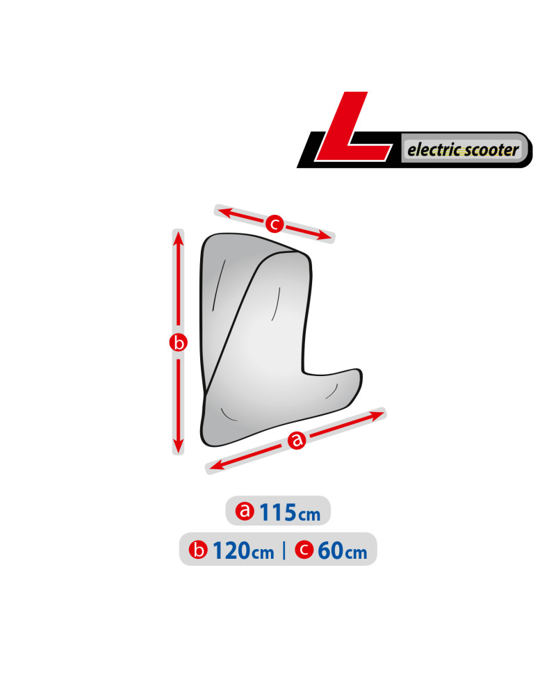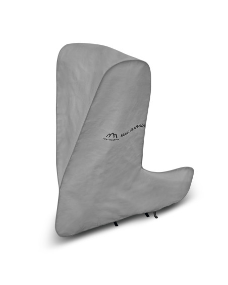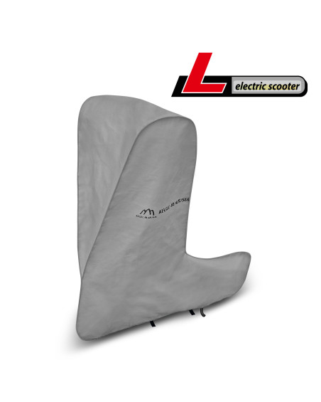 A membrane-based, waterproof and at the same time vapour-permeable cover to protect an electric scooter from adverse environmental influences. Weatherproof cover made entirely of a highly vapour-permeable membrane. Waterproof even in heavy rain and at the same time vapour-permeable, wicking away moisture from under the cover. Reduces corrosion and ageing of plastic parts, protects against fading and tarnishing of paintwork and chrome parts. Suitable for short-term outdoor storage of an electric scooter. It is attached with an elastic puller, making it easy to put on and take off. Additional fastenings under the scooter prevent the cover from being ripped off by the wind. Also suitable for indoor use.