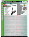 Park the electric scooter in a place sheltered from the wind in such a way that the scooter cannot tip over. Place the cover with the printed side outwards on a clean and dry scooter with the power off, then fasten the cover underneath the scooter using the 'Velcro' tapes sewn into the lower inner side of the cover. Ensure that both pairs of 'velcro' straps under the scooter are securely fastened together. Do not use the cover when charging the scooter's batteries or transporting the scooter on exposed exterior racks of vehicles. Do not use the cover which is damaged or leaking. Only use the cover for short term storage of an electric scooter parked in an area sheltered from the wind in such a way that the scooter cannot tip over.