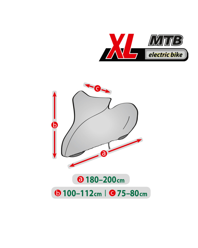 Park the bicycle in a place sheltered from wind securing it from tipping over. Place the cover with the printed side outwards on a clean and dry bike with the power off, then clip the cover under the bike and secure it to each wheel using the Velcro straps sewn into the lower inner side of the cover. Ensure that all three pairs of Velcro straps have been clipped properly and securely under the bike and clipped to each wheel . Do not use the cover when charging the acumulator/battery installed on the bicycle or when transporting the bicycle on exposed external vehicle racks. Do not use the cover when damaged or leaking.