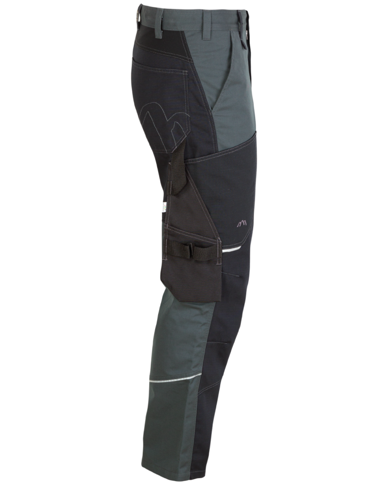 - Kieszeń miarowa na prawym udzie z taśmami do zawieszania narzędzi.