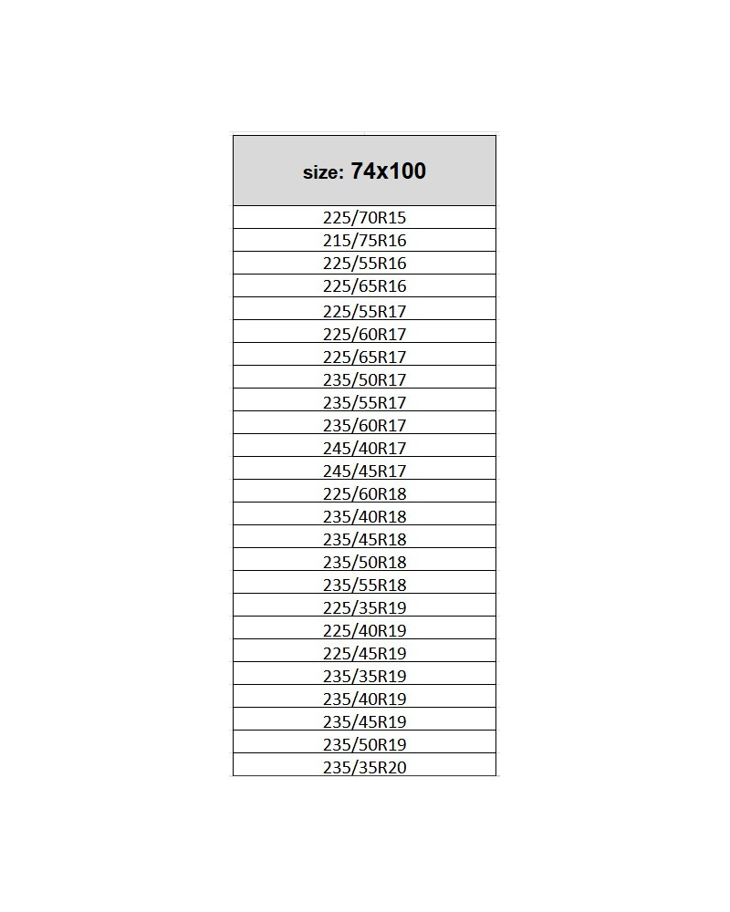 Fits wheels with a size of: 205/70R15, 215/65R15, 215/70R15, 195/65R16, 195/75R16, 205/65R16, 205/75R16, 215/60R16, 215/65R16, 215/70R1, 205/55R17, 215/55R17, 215/60R17, 215/65R17, 235/45R17, 215/50R18, 215/55R18, 225/40R18, 225/45R18, 225/50R18, 225/55R18, 205/55R19, 215/50R19.