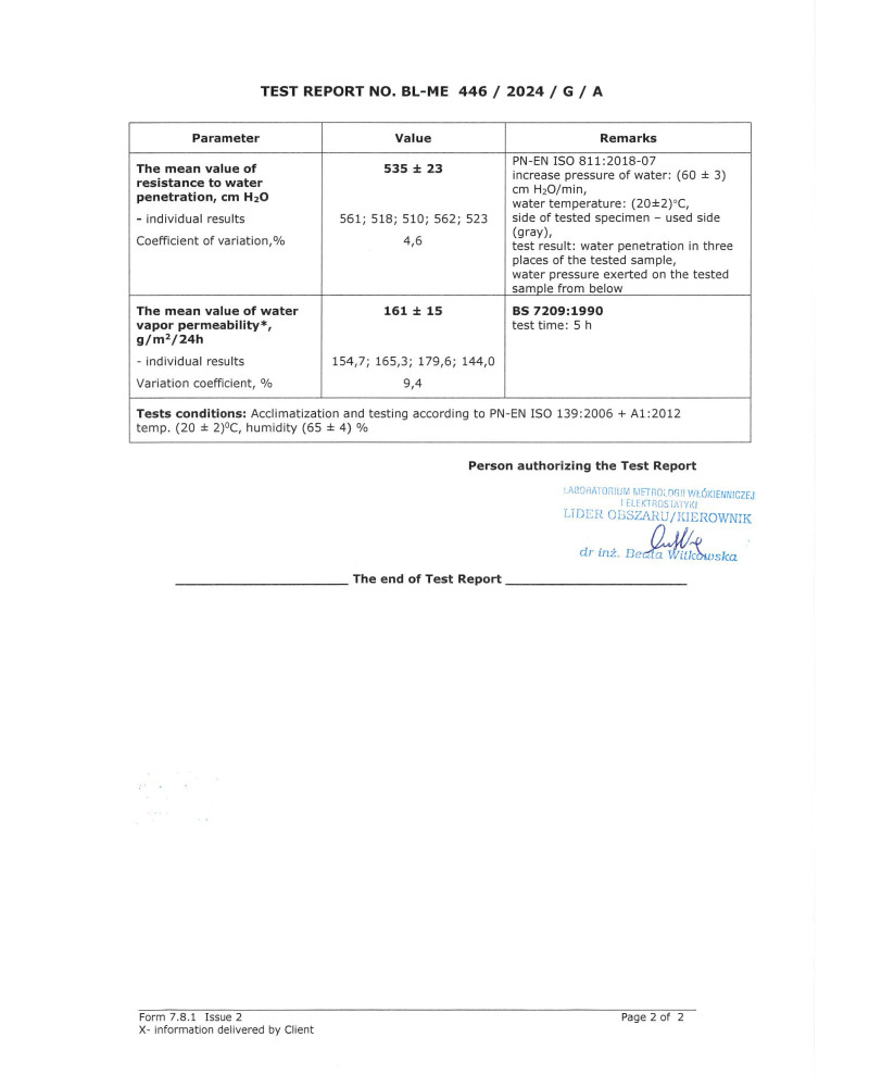 Below is a report on the vapour permeability of the membrane used to manufacture Optimal Garage covers. The test was carried out in an independent research laboratory.