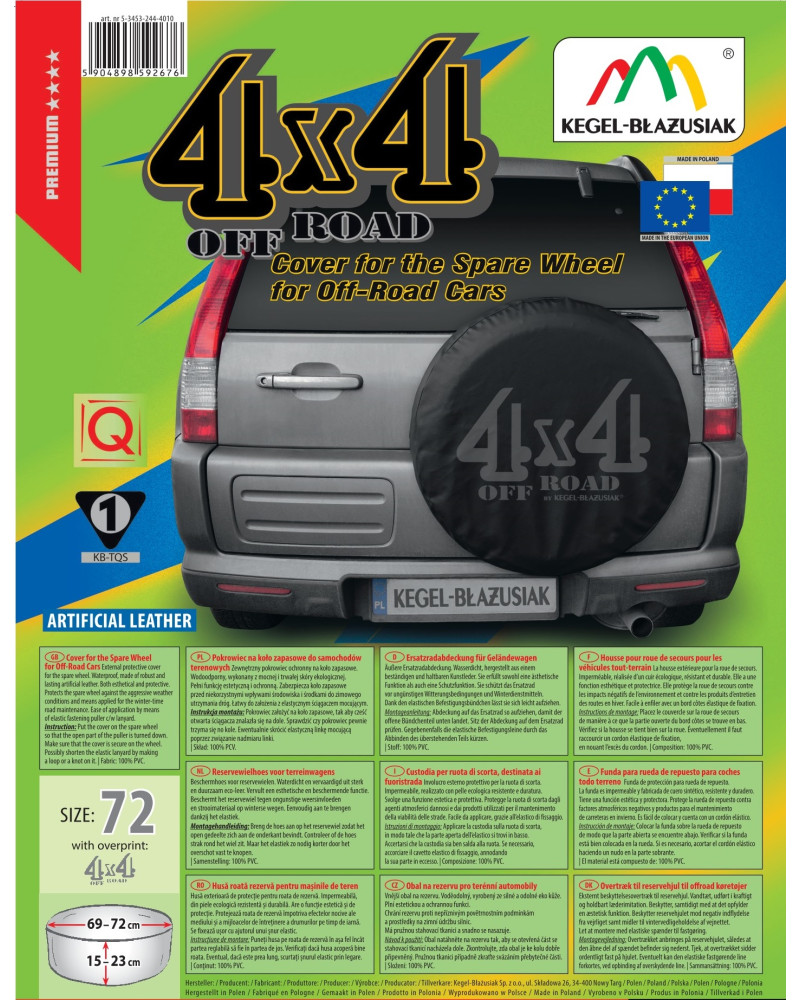 High-quality external cover for a 4x4 spare wheel – made of high-quality eco-leather. The waterproof material protects the wheel from rain, adverse environmental conditions and winter road maintenance chemicals. It serves both a protective and aesthetic function. It looks great and visually harmonises with any car. It is black with an attractive 4x4 print on the front of the cover.