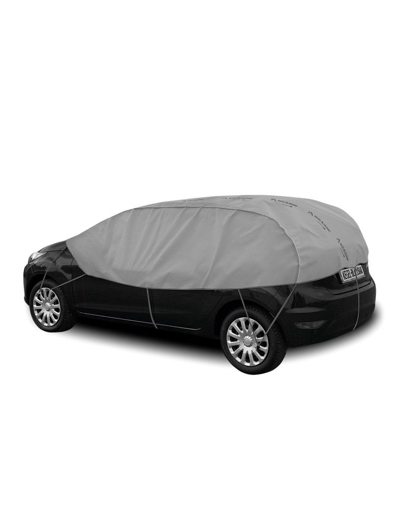 The high-quality material is durable and strong. The covers are grey, which is extremely practical and looks great at the same time. The product is suitable for both temporary and long-term use. Designed for car owners who do not have the possibility of garaging their cars and leave them outside for longer periods of time. The product is very easy and quick to install. Simply hook the elastic loops of the cover, which are finished with secure hooks, onto the rims, the lower edge in the middle of the car and the lower edge of the rear bumper (installation instructions below). The cover stays firmly attached to the car and does not move even in gusty winds. When folded, the cover does not take up much space, so you can always carry it with you.