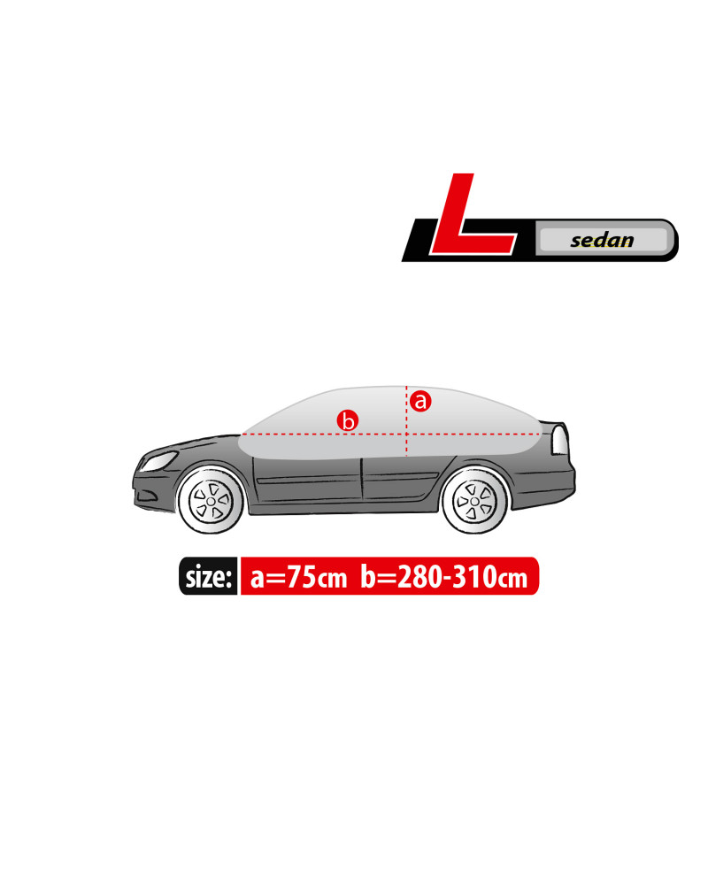 The high-quality material is durable and strong. The covers are grey, which is extremely practical and looks great at the same time. The product is suitable for both temporary and long-term use. Designed for car owners who do not have the possibility of garaging their cars and leave them outside for longer periods of time. The product is very easy and quick to install. Simply hook the elastic loops of the cover, which are finished with secure hooks, onto the rims, the lower edge in the middle of the car and the lower edge of the rear bumper (installation instructions below). The cover stays firmly attached to the car and does not move even in gusty winds. When folded, the cover does not take up much space, so you can always carry it with you.