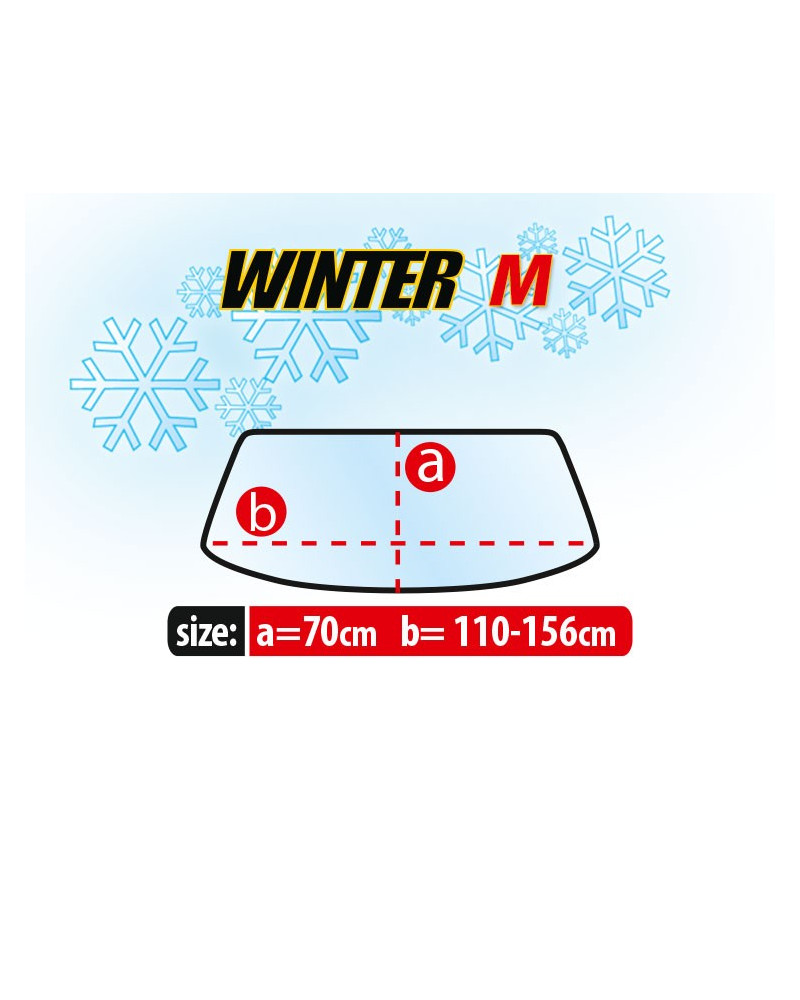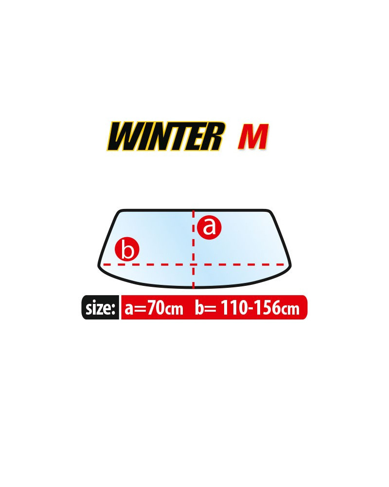 -size of the front windscreen of the car to which the cover fits : 70 cm (height), 110 cm-156 cm (windscreen length)
