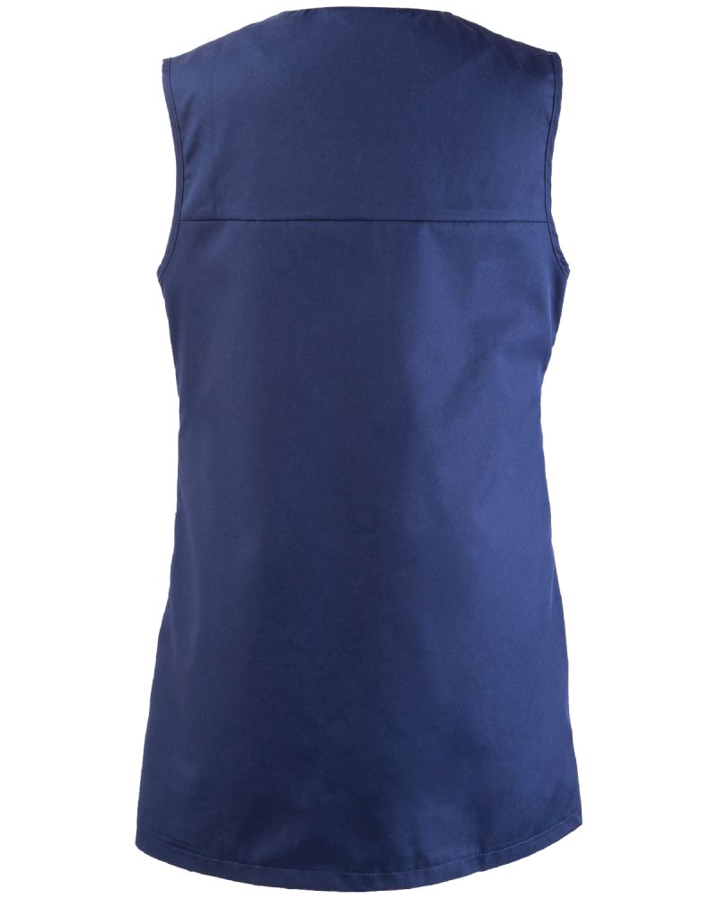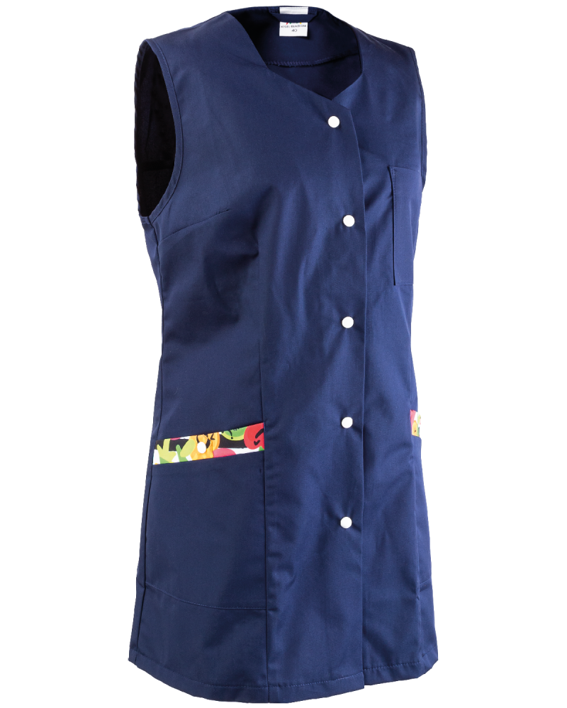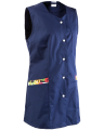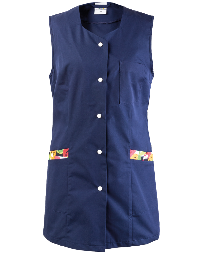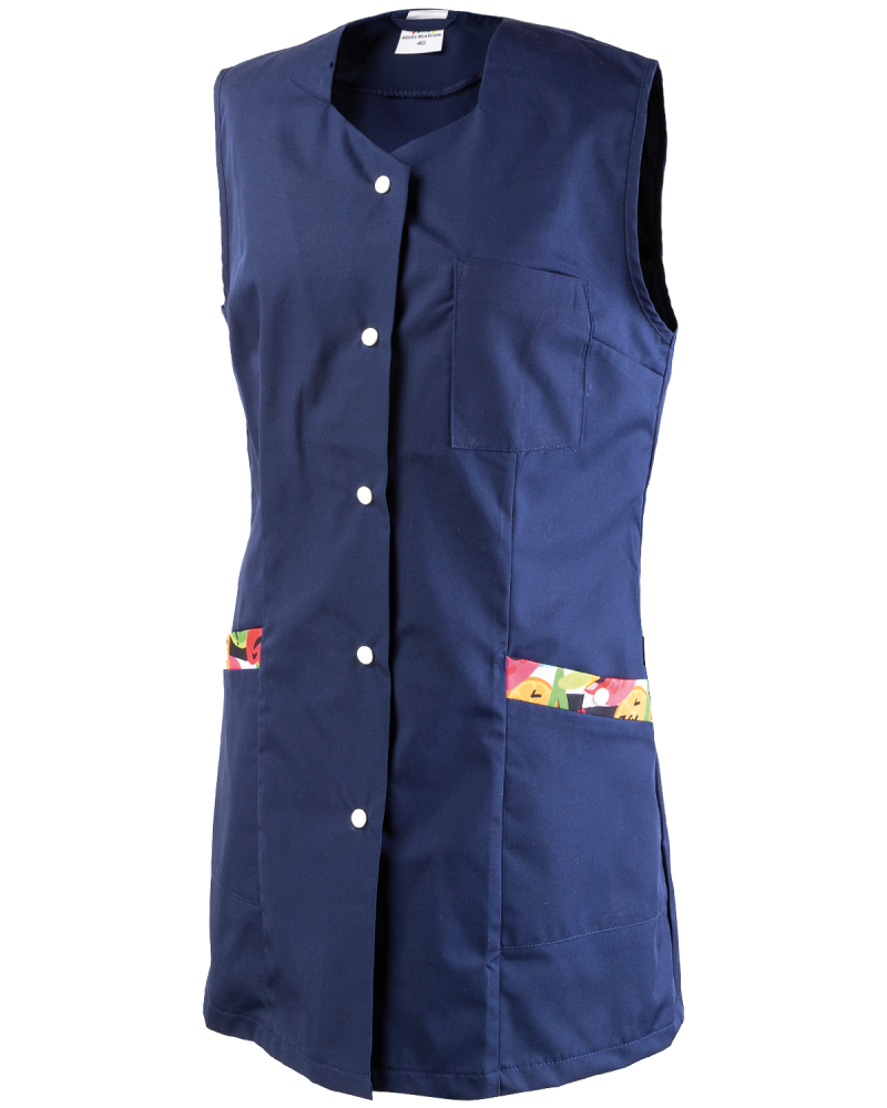 Fartuch damski KBT z kontrastowymi kieszeniami, bez rękawów, idealnie się sprawdzi w pracy pań odpowiedzialnych za utrzymanie czystości i porządku. Fartuch uszyty z wysokiej jakości tkaniny – firmowa tkanina Kegel-Błażusiak KB Textil – mocna, trwała, zapewniająca ochronę przed zabrudzeniami, zachowująca kolory po wielokrotnym praniu. Materiały i nowoczesna technologia, z których odzież została wykonana, gwarantują komfort i bezpieczeństwo podczas noszenia.